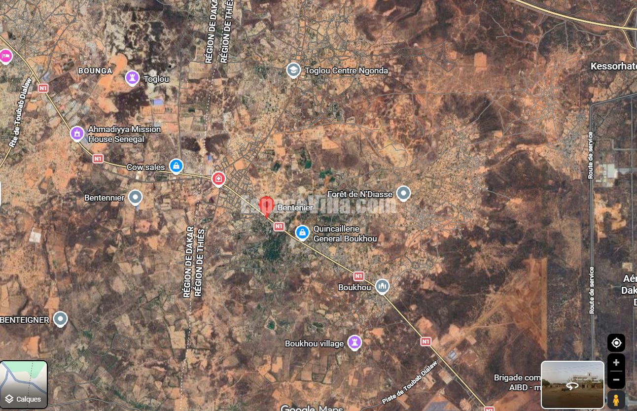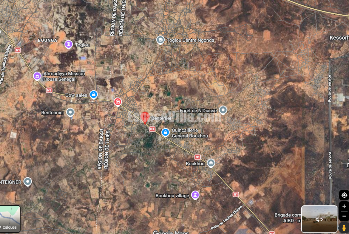 42 hectares à vendre à Bentenier Diass, route de Mbour en première position. Surface de 42000m2. Papier: bail individuel. Prix: 25 000Fcfa/m2