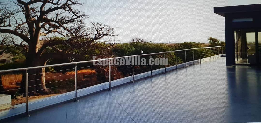 Le domaine est entièrement clôturé et est autonome en eau et électricité solaire. Il comprend : * 01 grande villa construite sur 800 m2; * 01 villa construite sur 380 m2; * 01 autre grande villa qui fait office de logement du Président du Groupe familial français (qui est le propriétaire du domaine); * le logement du gardien qui est construit sur 100 m2. Il reste à peu près 17 hectares de terrain vierge.