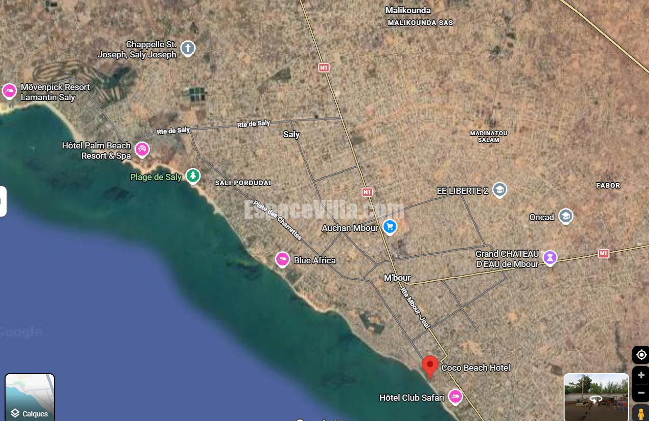 Hotel à vendre à Mbour, Hotel COCO Beach Pieds dans l’eau, Composé de 150 bengalows, Restaurant, Piscine, Salle de Conférences