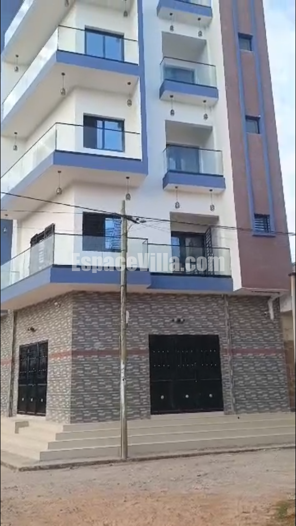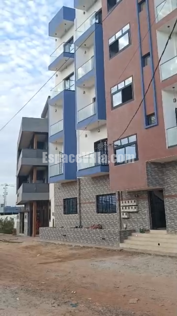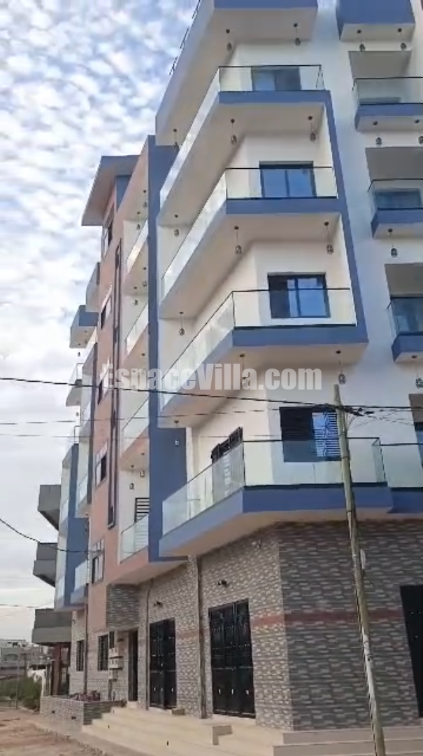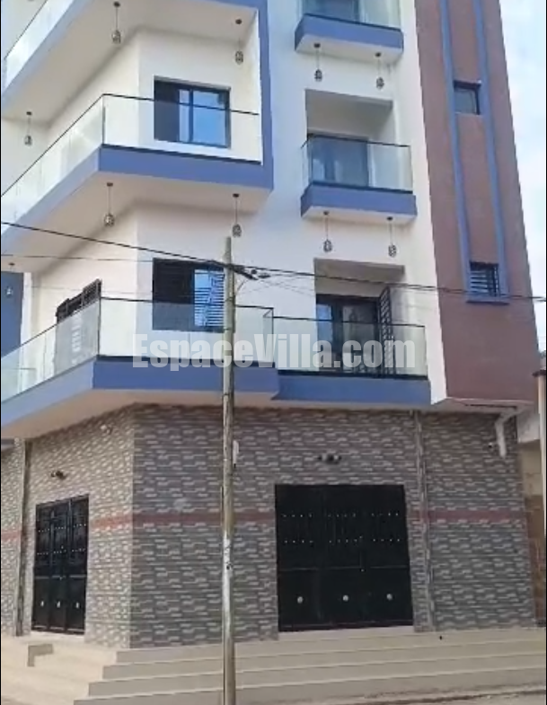 Immeuble r+4 à vendre à Zac mbao cité sonatel pas loin rond point brioche doré jamais habité. Une surface de 200m2 angle, composé de 9 appartements de : 2 chambres sallon, 1sdb, toilette visiteur, cuisine. L’immeuble dispose d’un grand magasin.