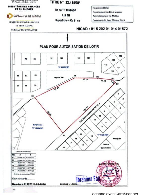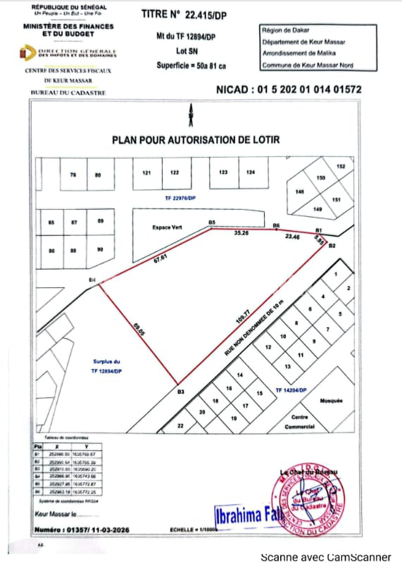 Papier: Titre foncier individuel. Prix: 100.000 Fcfa/m2