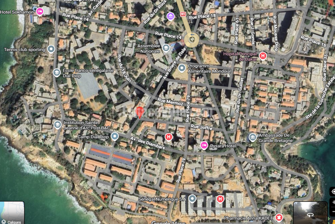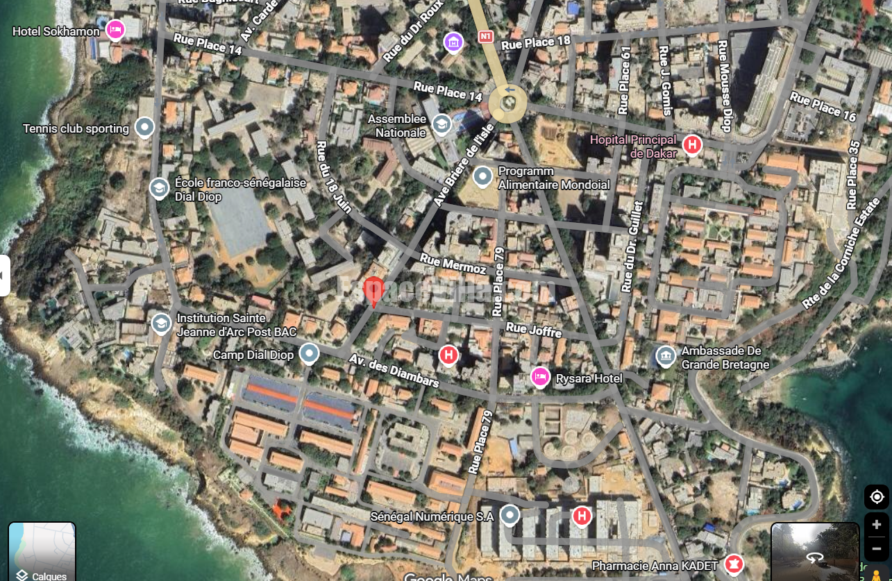 Terrain 1000m2 à vendre à Dakar plateau, rue Amadou Cissé Dia, à seulement 200m du camp Dial Diop et à coté du rond-point de l’Assemblée nationale. Terrain avec une fondation sous-terraine conforme.