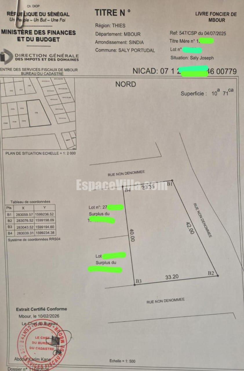 Terrain à vendre à Saly Joseph en face chez Yerim Seck. Terrain double angles trés bien placé en premiere position de la route. Surface de 1071m2. Papier: Délibération. Prix: 65millions Fcfa