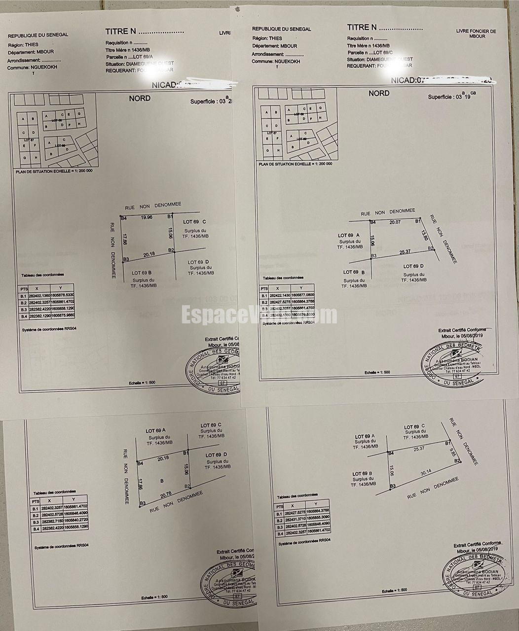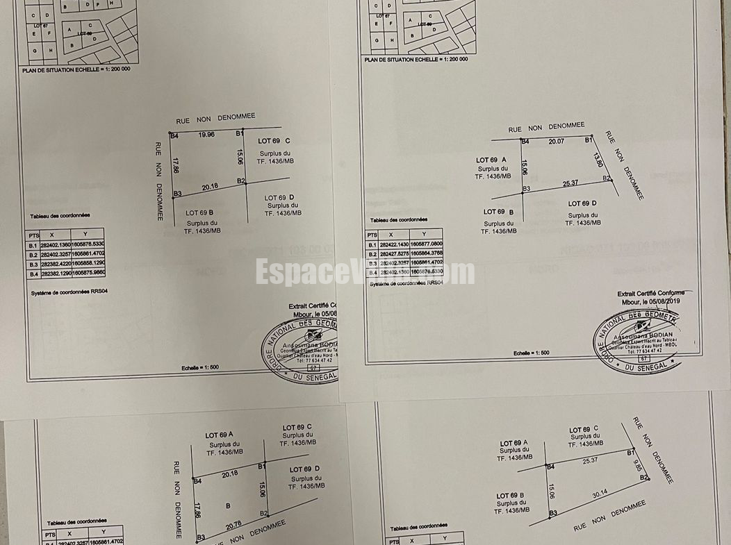 Terrain à vendre à Nguekhokh. Surface de 1200m2. Papier: Délibération