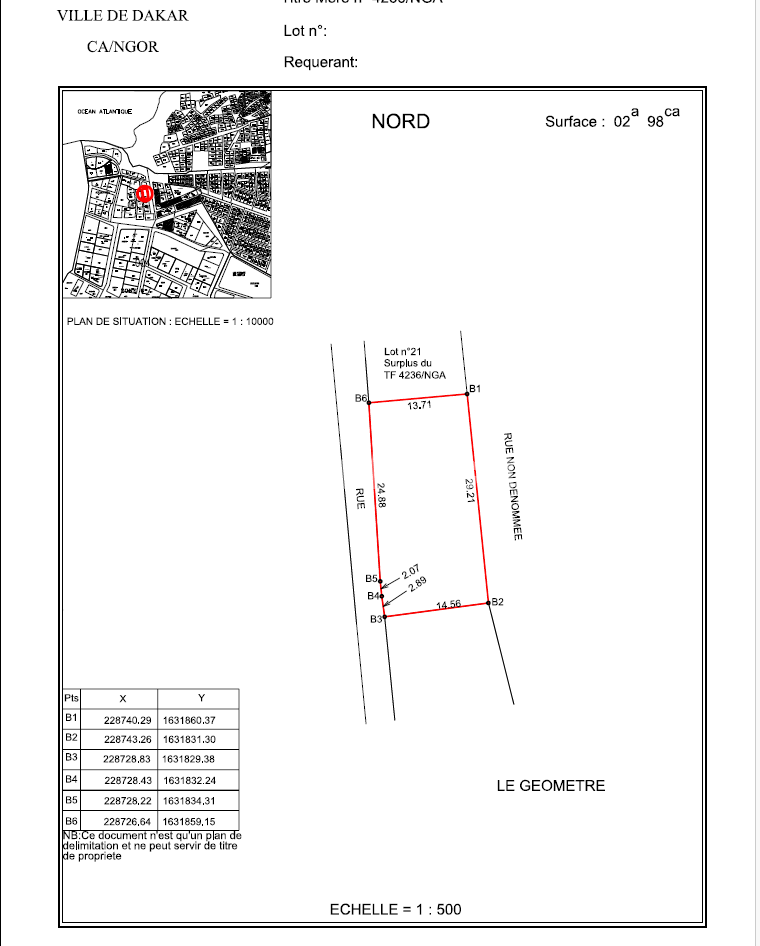 Terrain à vendre à Ngor Almadies. Surface de 200m2. Papier: Bail déposé, Droit Réel (en cours regularisation) Prix: 100millions Fcfa (Avance 50 millions Fcfa, durée 5mois en attente du Bail)