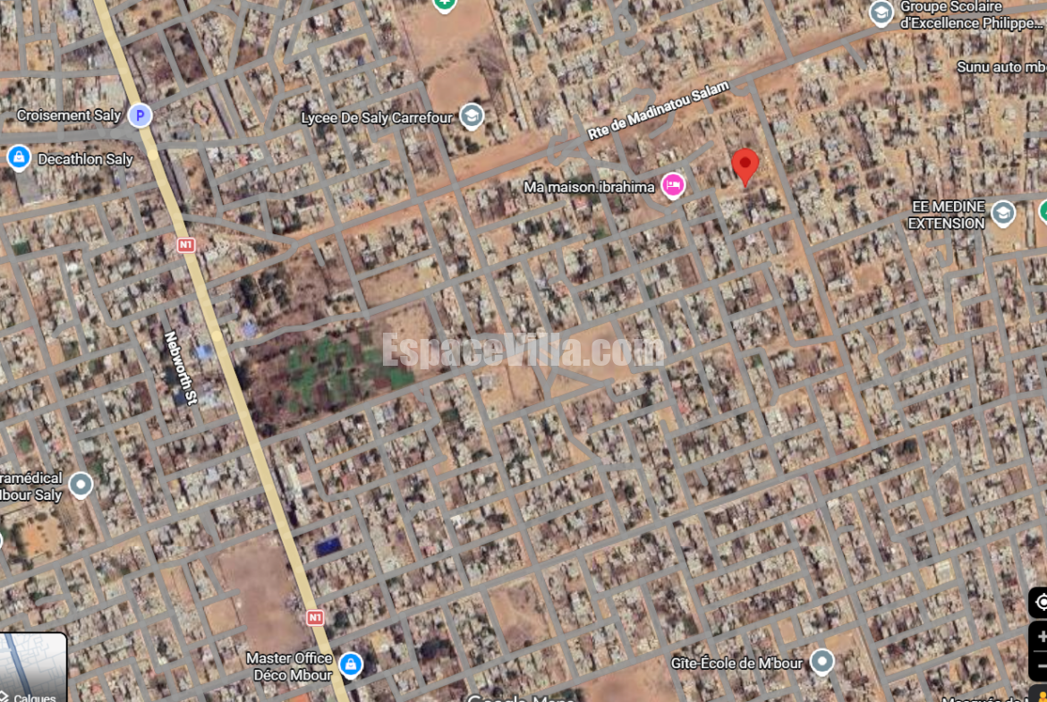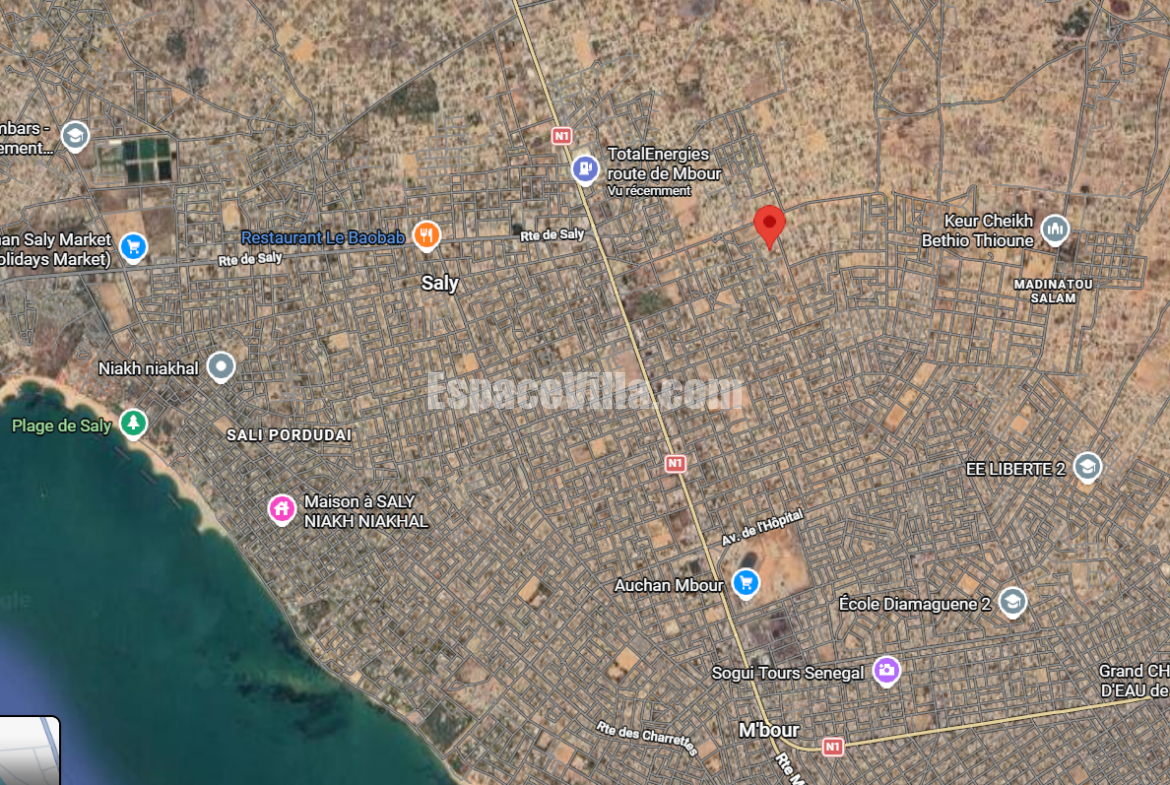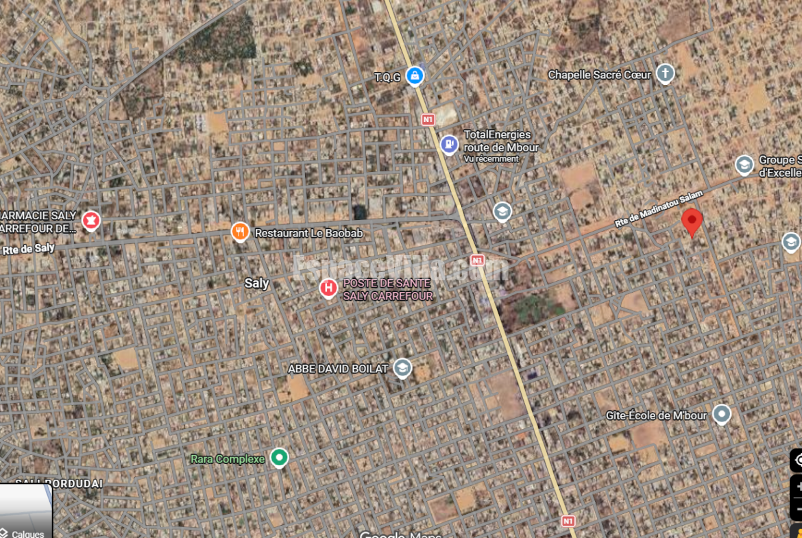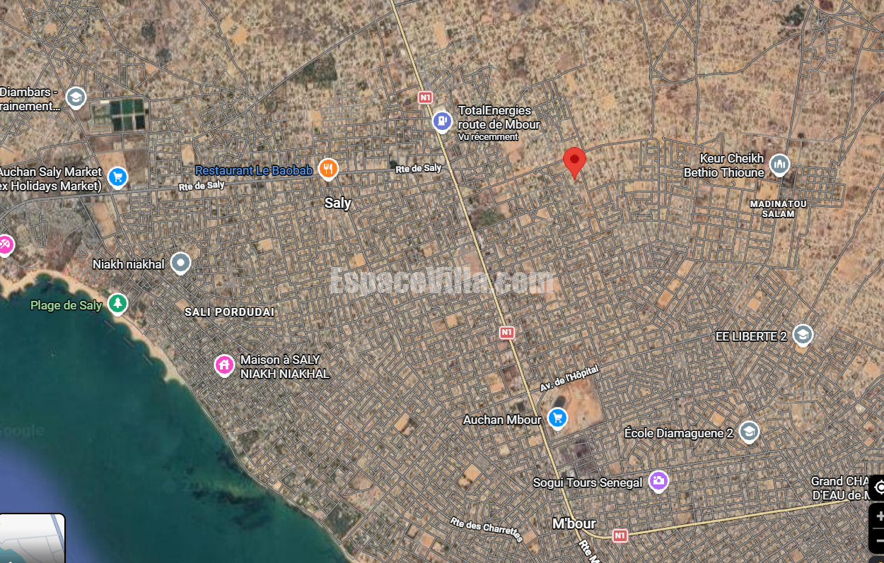 Terrain 250m2 à vendre à Mbour Médine, en face du lycée de Saly, en 2ᵉ position d’une route.