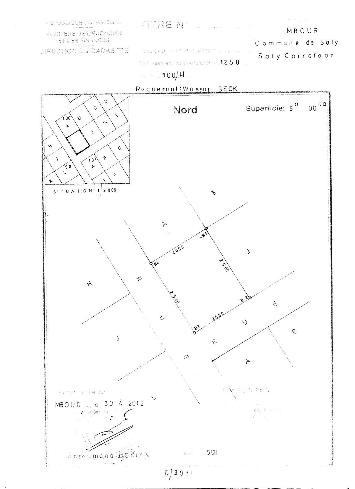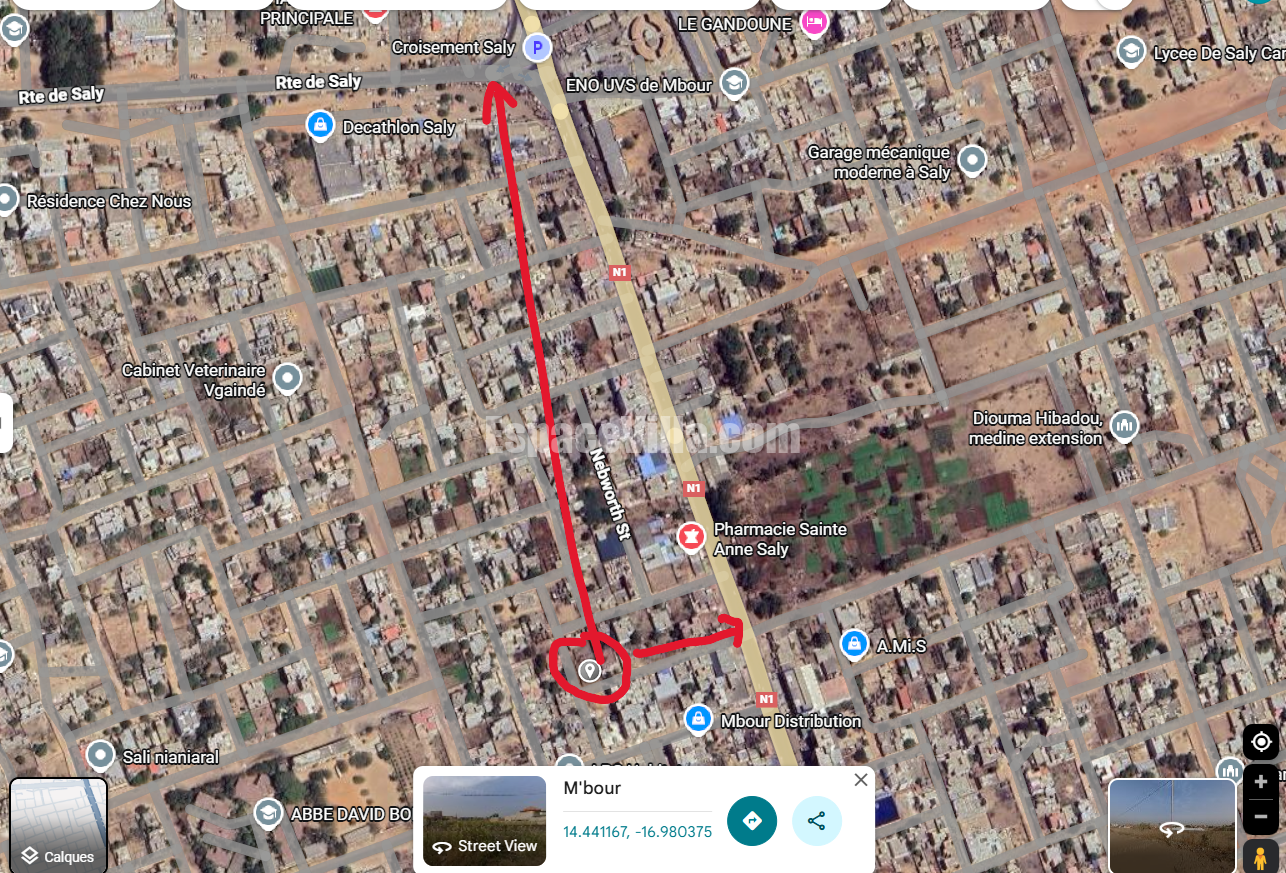 Terrain à vendre à Saly Carrefour, en allant vers Mbour. Surface 500m2 angle. Papier: Bail. Prix: 50millions Fcfa