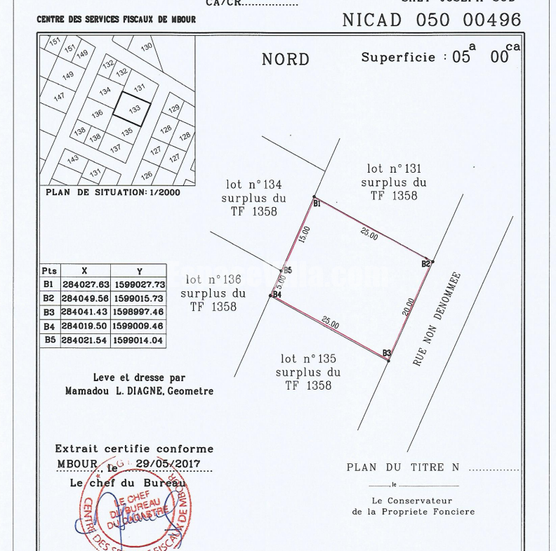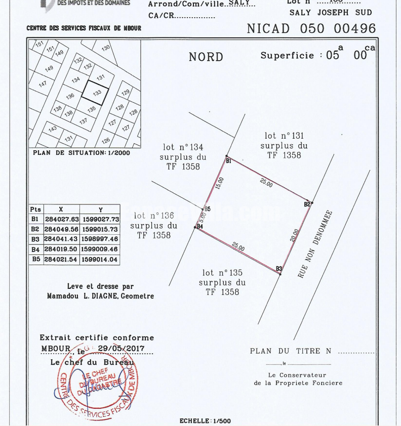 Terrain à vendre à Saly Portudal, Saly joseph à 500m de l’institut Diambar. Surface de 500m2. Papier: Bail Sapco. Prix: 45millions Fcfa