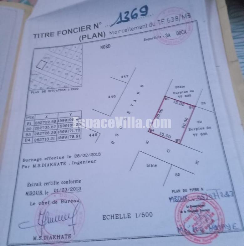 Terrain à vendre à Ngaparou Premiere position de la route principale Ngaparou-Saly, côté station API. Surface de 300m2 Angle. Papier: Délibération. Prix 45millions Fcfa