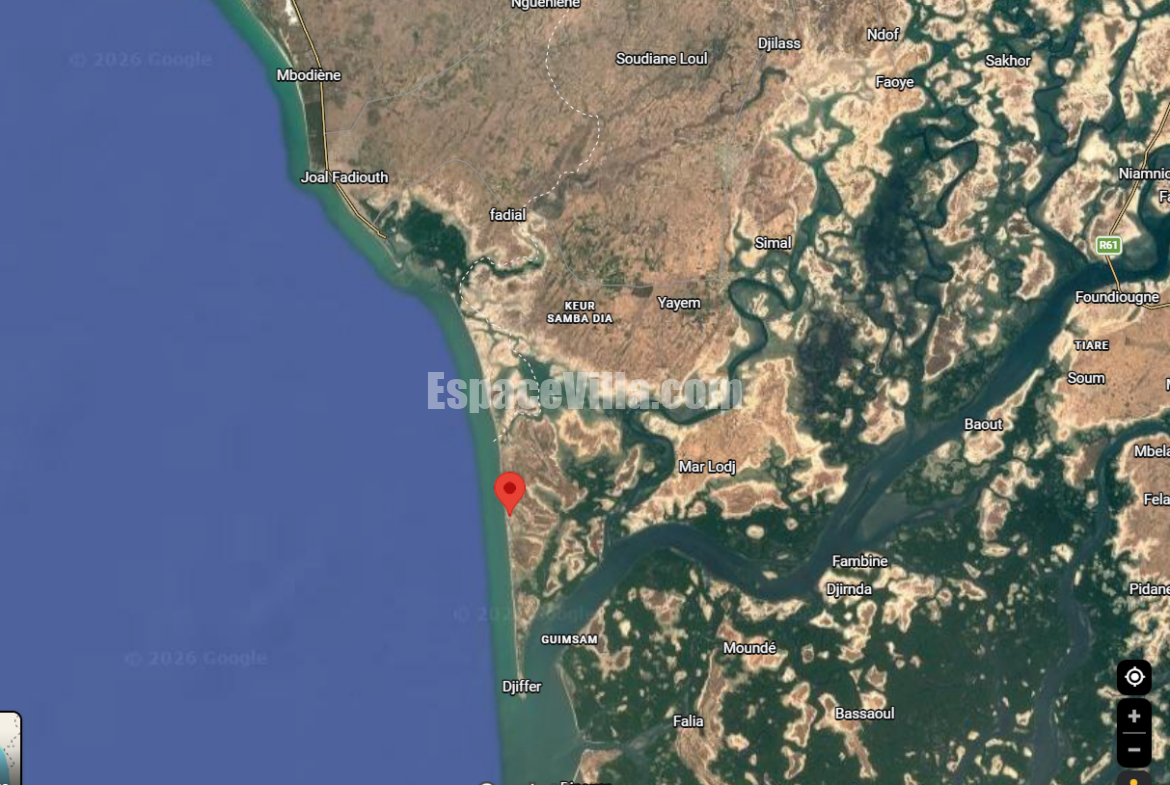 Terrain pieds dans l’eau à vendre à Palmarin, Fatick. Surface de 4000m2 déjà clôturé