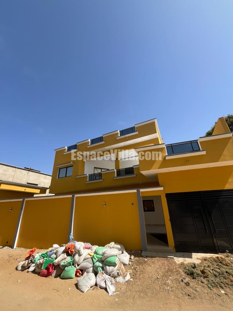 Villa R+1 à vendre à Saly Niakhniakhal. Villa composée de 4 chambres salle de bains chacune, salon, cuisine, terrasse, piscine, garage, local gardien, toilette exterieure.