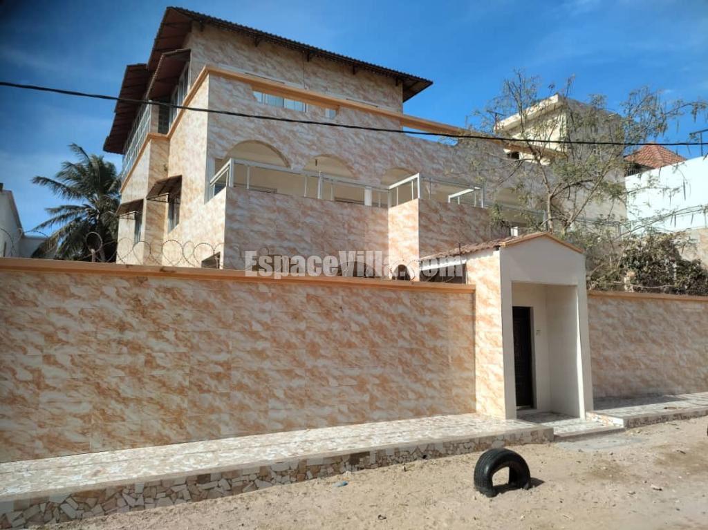 Villa R+2 à vendre à Petit Mbao dans un quartier résidentiel, pas loin de la mer. Surface 400m2, composée de : – Au Rez-de-chaussée : 3 chambres équipées de salles de bain, 1 grand salon, 1petit salon, une cuisine,1 cour avant, un jardin et toilettes extérieures