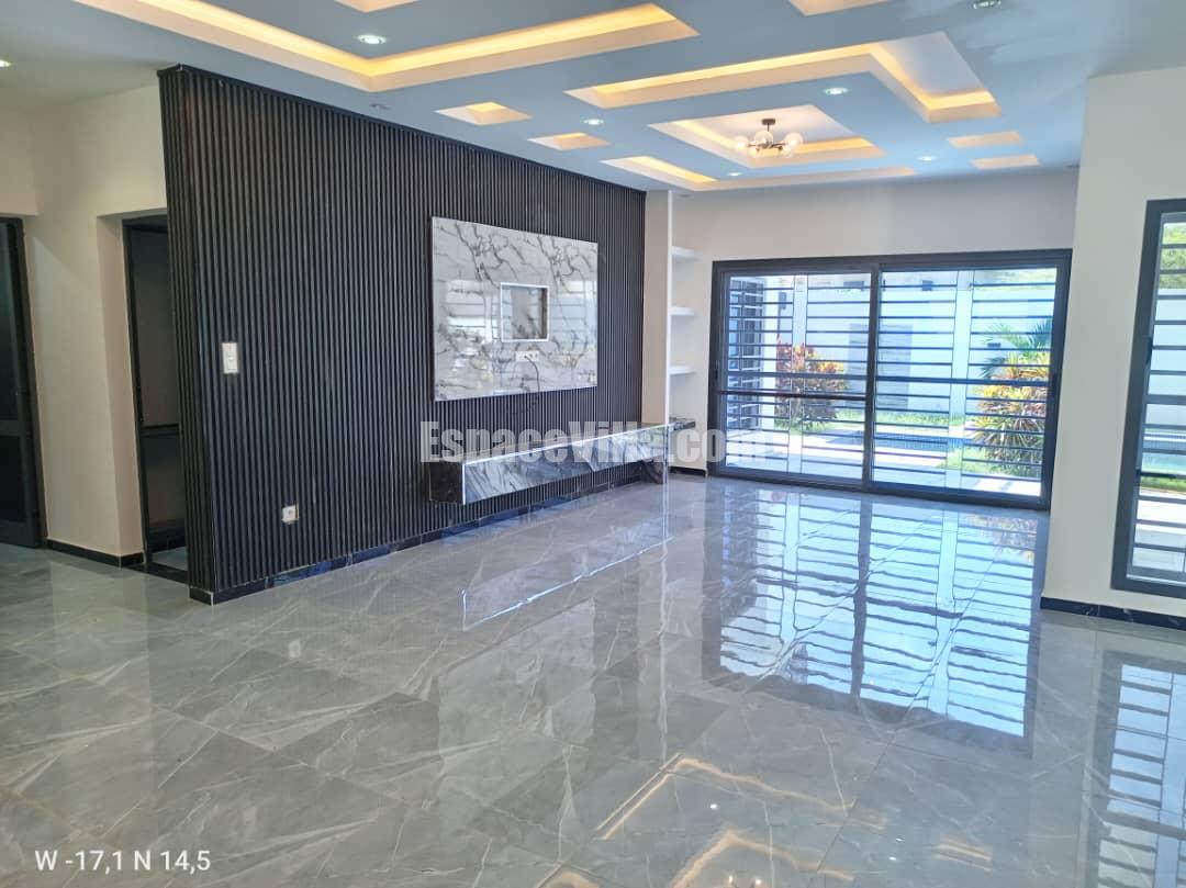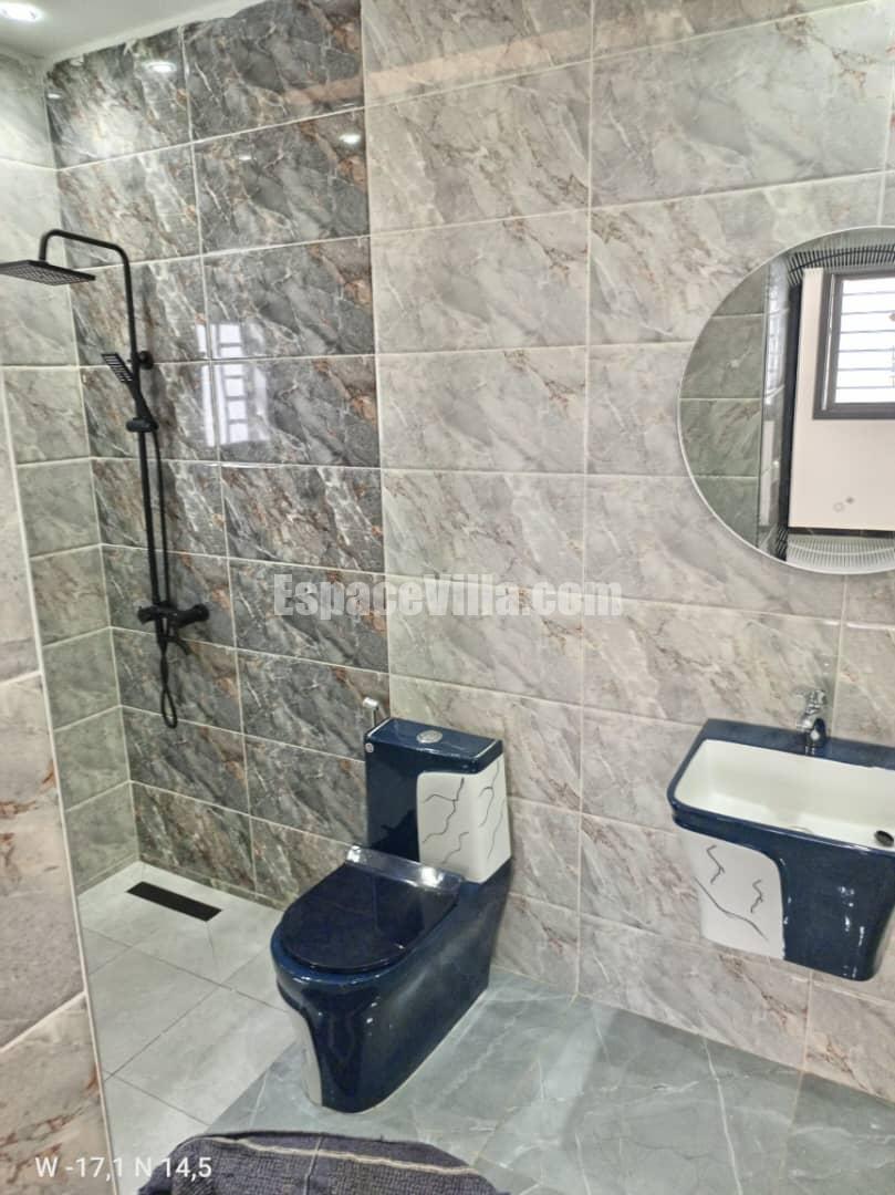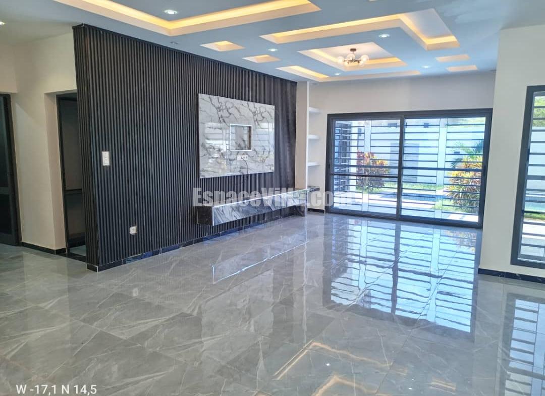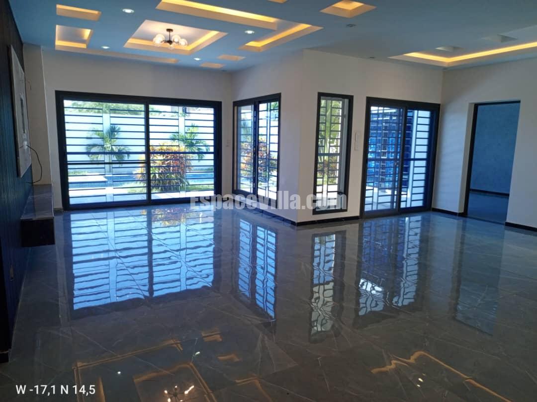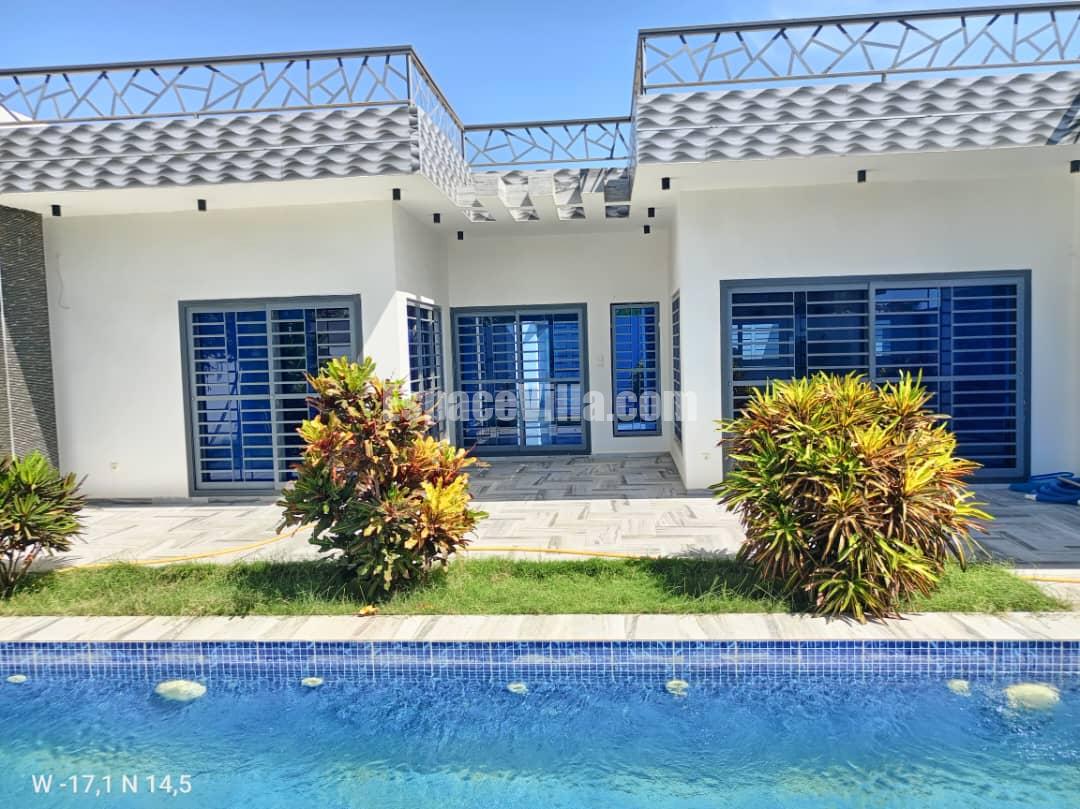 Villa à Vendre à Somone dans un quartier calme. Surface du terrain 500 m2, la villa est composée de 3 chambres avec salles de bains, salon, cuisine, piscine, jardin très espacieux,