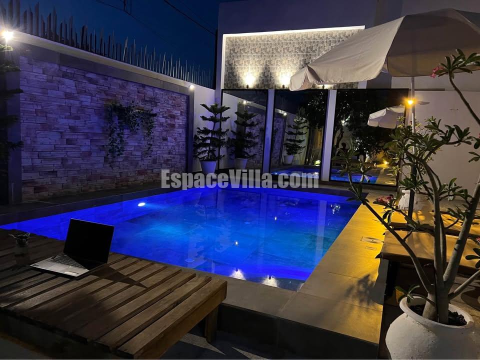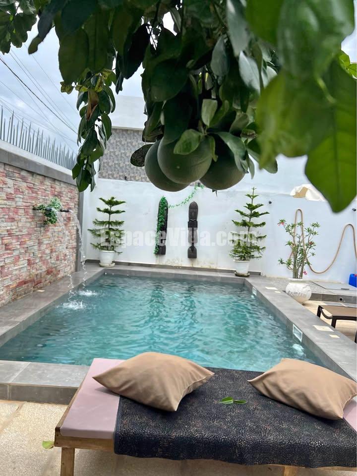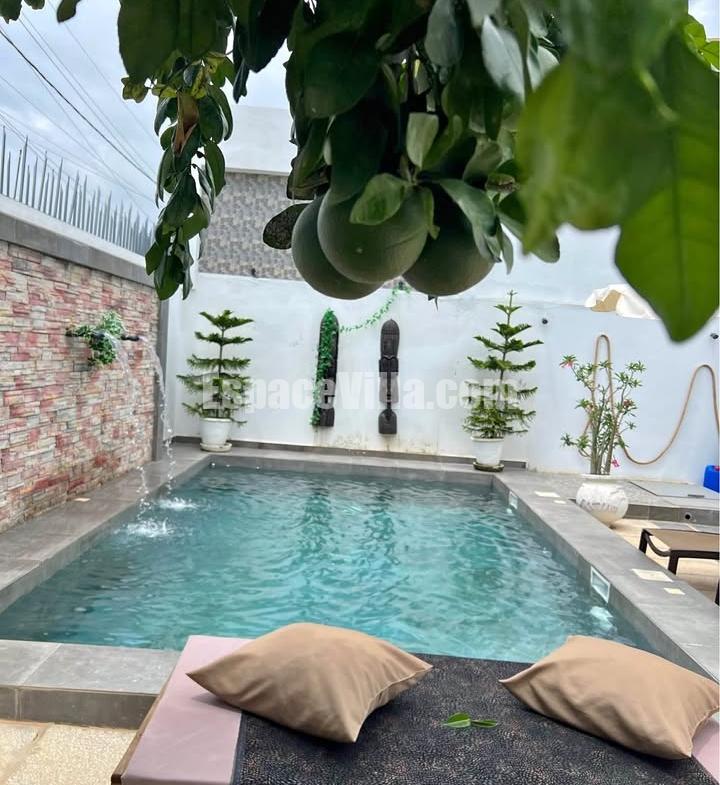Villa de vacances à louer à Ngaparou. Villa composée de 3 chambres Climatisées, salles de bains, Salon, Cuisine, Piscine, Wifi et tout le confort, idéale pour vos sejours, nuitées, week-ends ou vacances en famille. Tarifs: 65 000Fcfa/Jour