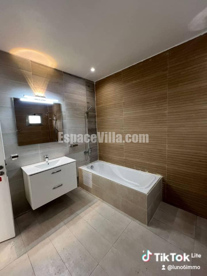 Belle villa r+2 à louer à la sipres 5 de Grand Mbao, vue sur mer avec piscine toute noeuve, jamais habitée. Villa composée de 5 chambres, chaque chambre avec salle de bains, 2 salons, cuisine américaine et africaine cours arrière avec toute les commodités.. prix : 700milles Fcfa/mois